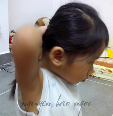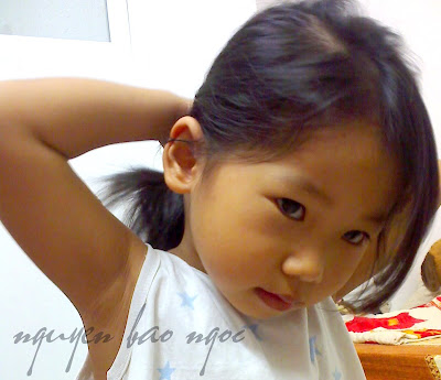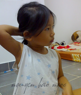 Để Ti tự cột tóc.